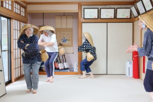 どじょうすくい踊りをした事のない3人のお仲間さん達が見え、2時間の特訓をして帰られました。