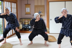 顔にかかった泥水をぬぐう所作は意外に難しく、今回もおさらいしました。