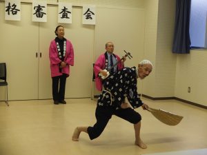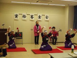 審査の種目は踊り、唄、三味線、鼓、銭太鼓です。当教室から受けた人全員合格でした。