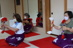 童謡や歌謡曲に合わせて打つ銭太鼓の日があります。どなたにもできますよ。体験有りです。